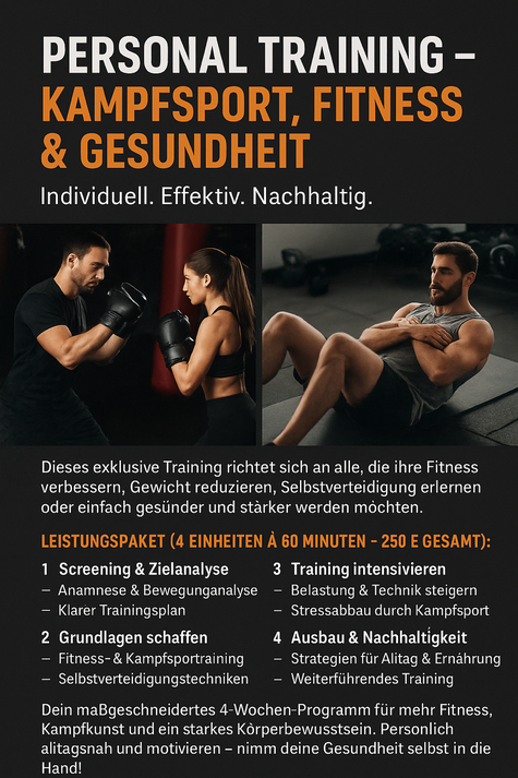 Dieses exklusive Training richtet sich an alle, die ihre Fitness verbessern, Gewicht reduzieren, Selbstverteidigung erlernen oder einfach gesünder und stärker werden möchten.
